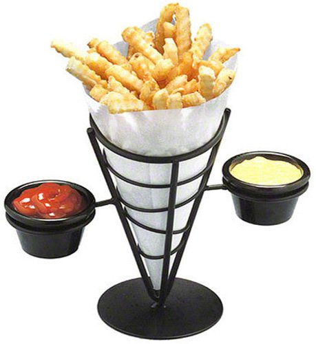 American Metalcraft (FBC92) 1 Cone Wrought Iron Conical Basket w/ 2 Ramekin Holders