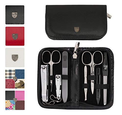 3 Swords Germany - brand quality 8 piece manicure pedicure grooming kit set for professional finger & toe nail care scissors clipper fashion leather case in gift box, Made in Solingen Germany (21309)