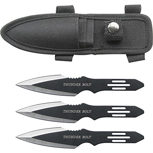 Perfect Point RC-595-3 Thunder Bolt Throwing Knife Set with Three Knives, Black Blades, Steel Handle, 5-1/2-Inch Overall