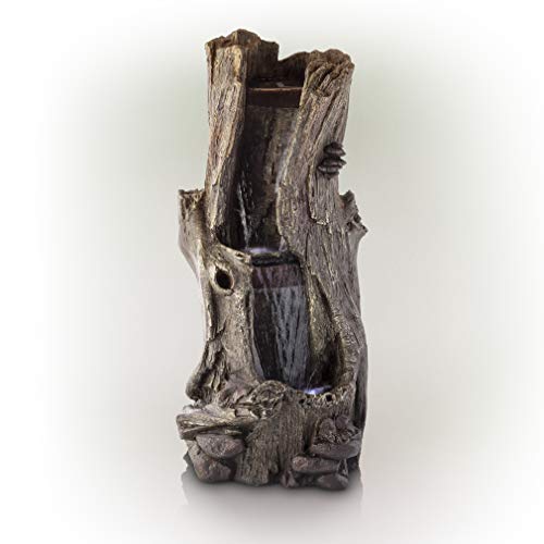 Alpine Corporation 3-Tier Tree Trunk Water Fountain with LED Lights - Outdoor Waterfall for Garden, Patio, Deck, Porch - Yard Art Decor