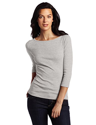 Three Dots Women's 3/4 Sleeve British Tee, New York Grey, Medium