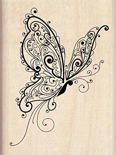 Inkadinkado Patterned Butterfly Wood Stamp for Scrapbooking, 2.25'' W x 3'' L