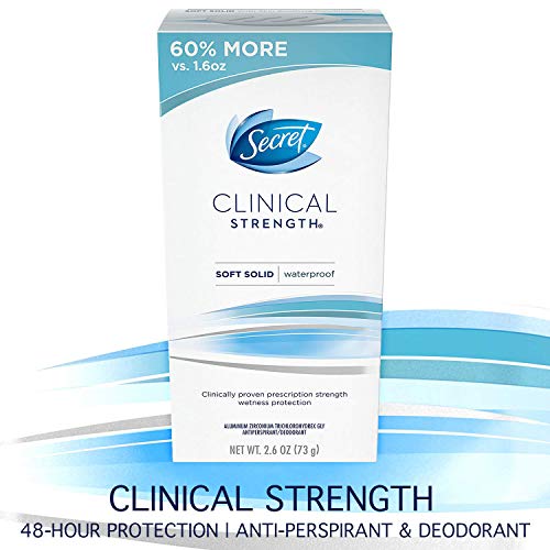 Secret Antiperspirant and Deodorant for Women, Clinical Strength Soft Solid, Waterproof, 2.6 Oz