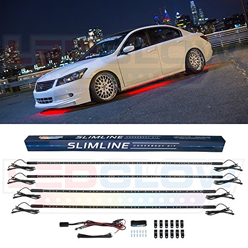 LEDGlow 4pc Red Slimline LED Underbody Underglow Accent Neon Lighting Kit for Cars - Solid Color Illumination - Water Resistant, Low Profile Tubes - Included Power Switch Turns Lights On & Off