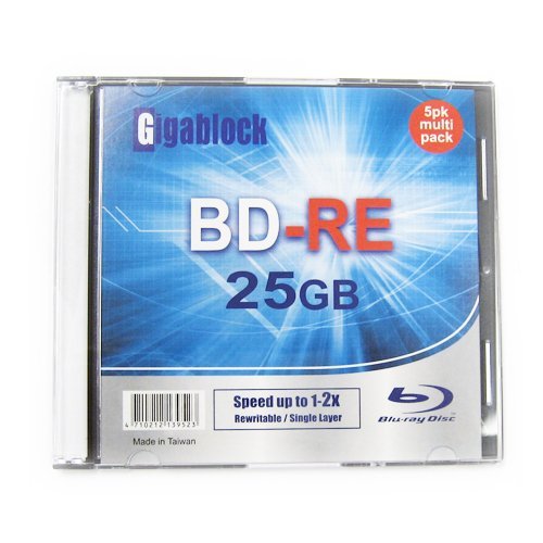 5pcs Gigablock ReWritable Blu-Ray BD-RE 1~2x 25GB Logo Printed Blank Media with Jewel Case
