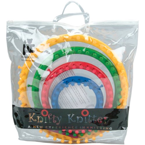 Genuine Knifty Knitter Round Loom Set with 4 Looms, Hook & Bag