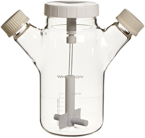 Wheaton 356884 Glass 1000mL Celstir Spinner Flask, with 45mm Screw Caps, 130mm x 250mm