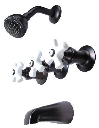 Trim Kit for Porcelain 3-handle Shower Valve, Fit Price Pfister Compression Stem Shower, Oil Rubbed Bronze Finish -By Plumb USA