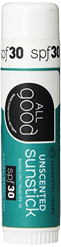 All Good Organic Sunstick - Zinc Oxide Sunscreen for Face, Nose, Ears - Coral Reed Safe - Water Resistant - SPF 30 (.6oz)(Unscented)