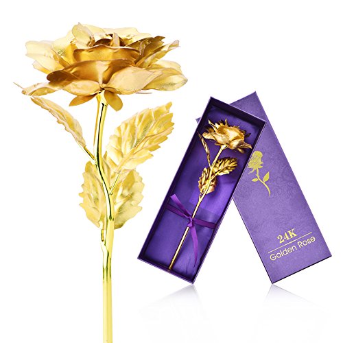 ZJchao Gold Foil Rose Flowers 10" Long Stem Artificial Flowers for Women Mother's Day Birthday Gift (Gold2)