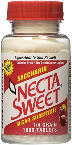 Necta Sweet Saccharin Tablets, 1/4 Grain, 1000 Tablet Bottle (Pack of 4)