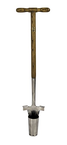 Joseph Bentley Traditional Garden Tools Stainless Steel Long-Handled Bulb Planter – Engraved 4-Inch Scale for Depth Measurements – For Soft and Hard Soil – Solid Oak Handle – Long Lasting Durability