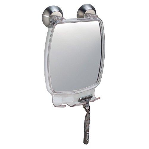 iDesign Forma Suction Shower Shaving Mirror with Razor Holder for Bathroom or Shower, Fog-Free Mirror with Strong Power Lock, Clear