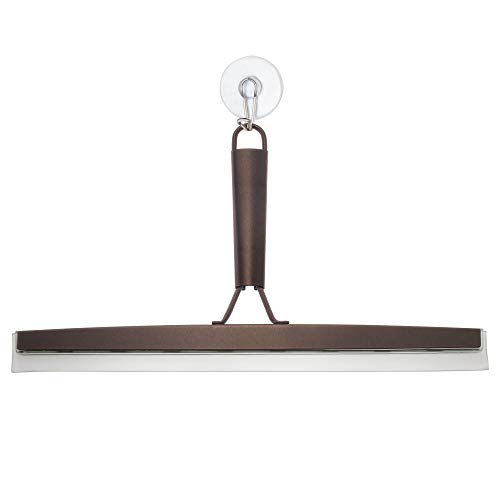 iDesign Forma Metal and Plastic Bathroom Squeegee for Shower, Glass Doors, Floors, Mirrors, with Suction Hook Holder , 12 inches, Bronze