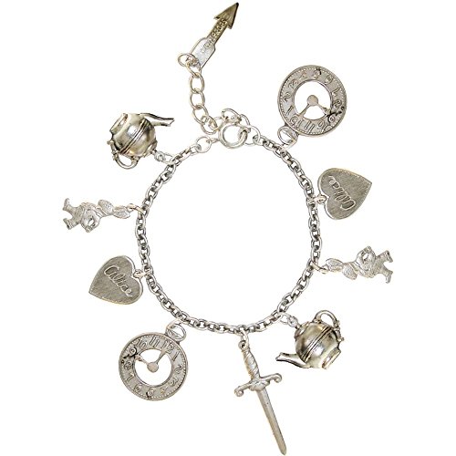 GIRLPROPS 100% Nickel Free Alice in Wonderland Charm Bracelet, USA!, in Burnished Silver