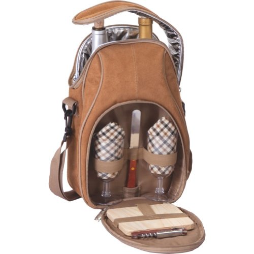 Picnic Plus Brava Wine & Cheese Set Holds 2 Bottles Thermal Insulated includes Glasses, Cheese Board