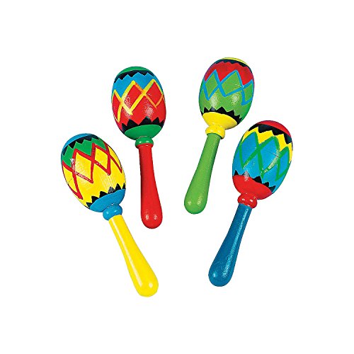 Fun Express Mini Wooden Painted Maracas - 12 Piece Pack
