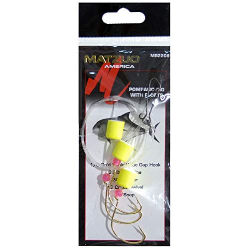 Matzuo Pompano Wide Gap Rig with Kahle Floats and Fluorescent Beads, Gold