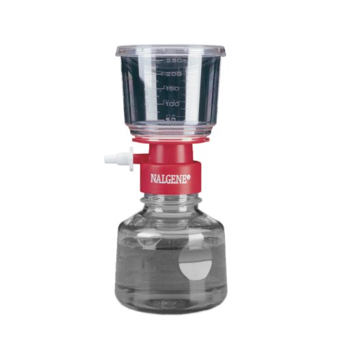 Nalgene MF75 Series Polystyrene Lab Filter Unit, Nylon, Red Collar,, 0.45 Micron, 50mm Membrane Diameter, 250mL Capacity (Pack of 12)