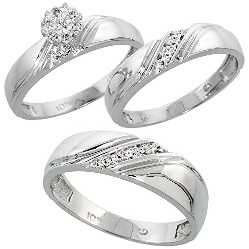10k White Gold Diamond Trio Wedding Ring Set 3-piece His & Hers 6 & 4.5 mm 0.10 cttw, Ladies Size 5