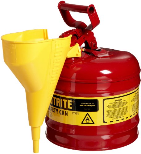 Justrite 7120110 2 Gallon, 9.50" OD x 13.75" H Galvanized Steel Type I Red Safety Can With Funnel