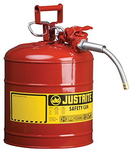 Justrite 7250120 AccuFlow 5 Gallon, 11.75" OD x 17.50" H Galvanized Steel Type II Red Safety Can With 5/8" Flexible Spout