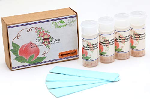Carrotmusic Model DZ-PR-TJ01-4 Four large bottles of Taojiao Peach Resin Dizi membrane glue with 4 packs of professional Dizi membranes