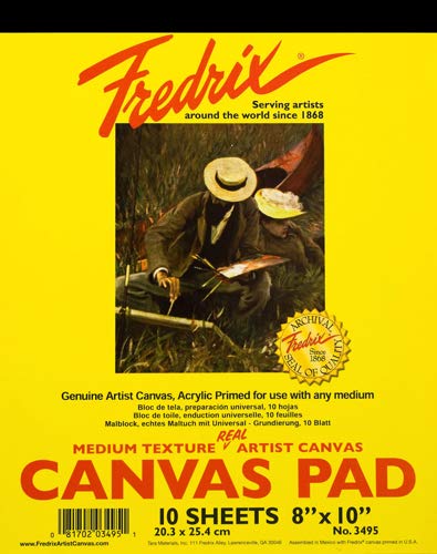 Fredrix 3495 Canvas Pad, 8" x 10" Canvas, Primed and Ready to Paint, Sturd, Can be Mounted When Dry, 10 Sheets per Pad, White