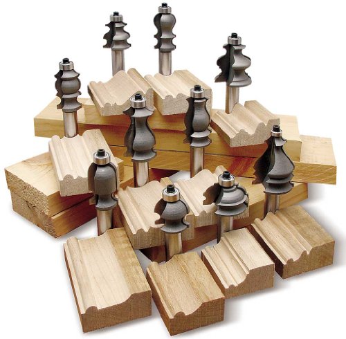 MLCS 8388 10 Piece Carbide-tipped Molding Plane Profile Bit Set, 1/2" shank