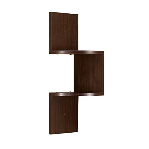 Danya B. QBA671SR1 Decorative Wall Decor - Floating 2-Tier Display Corner Shelf - Walnut Finish