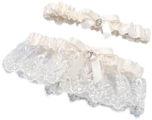 Darice VL58631, Lace Heart Accent Adjust Garter with Toss Away, Cream
