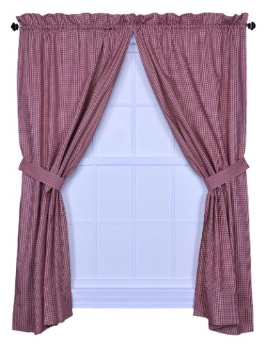 Ellis Curtain Logan Gingham Check Print 68-Inch by 72-Inch Tailored Panel Pair with Tiebacks, Red