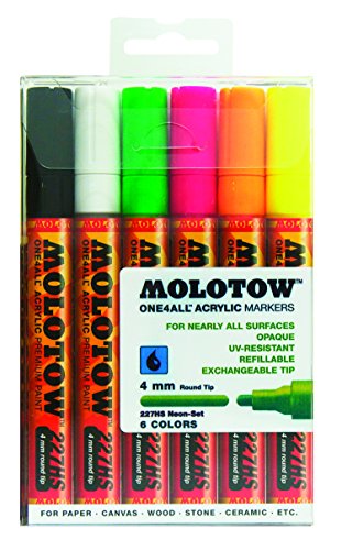 Molotow ONE4ALL Acrylic Paint Marker Set, 6 Neon Colors, 4mm (200.166)