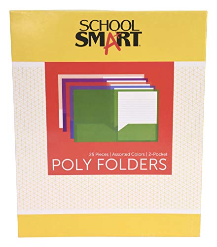 School Smart 2-Pocket Portfolios Without Fasteners, 8-1/2 x 11 Inches, Assorted Colors, Pack of 25