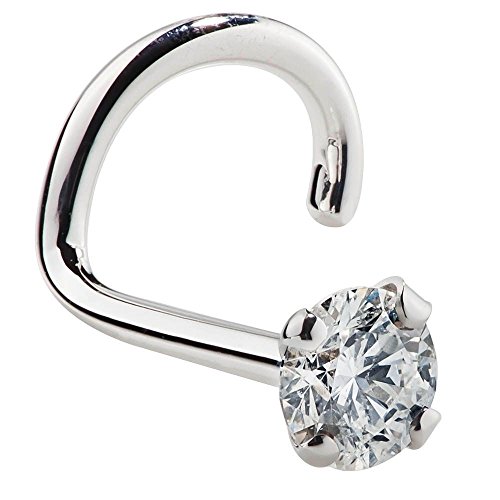 FreshTrends 2mm 0.03 ct. tw Diamond 14K White Gold Nose Ring Twist Screw - 20G