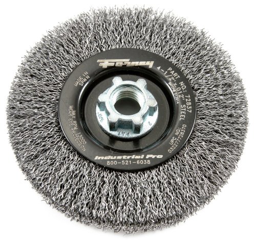 Forney 72837 Wire Wheel Brush, Industrial Pro Crimped with 5/8-Inch 11 and M14-by-2.0 Multi Arbor, 4-1/2-Inch-by-.012-Inch