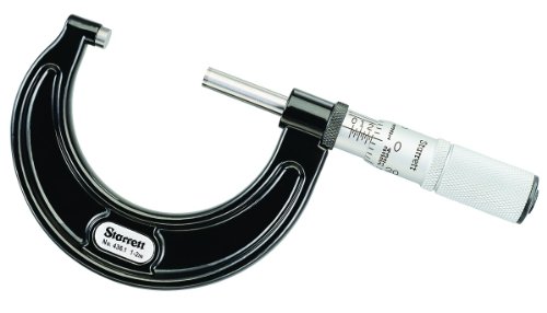 Starrett T436.1XFL-2 W/SLC Outside Micrometer, Friction Thimble, Lock Nut, Carbide Faces, 1-2" Range, 0.0001" Graduation, +/-0.00005" Accuracy, With Standard Letter of Certification