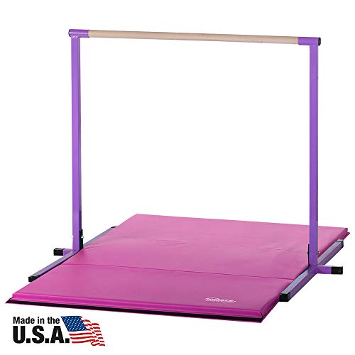 Nimble Sports 4ft Purple Horizontal Bar and 6ft Pink Folding Gym Mat
