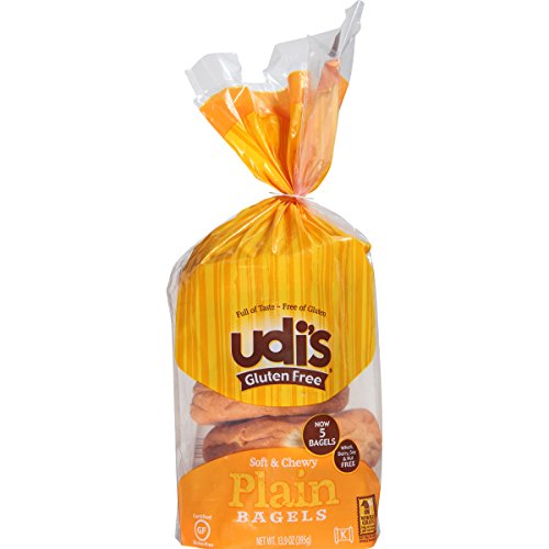 Udi's Gluten Free Bagels, Super Soft and Chewy, Plain, 5 count bag, (Frozen)