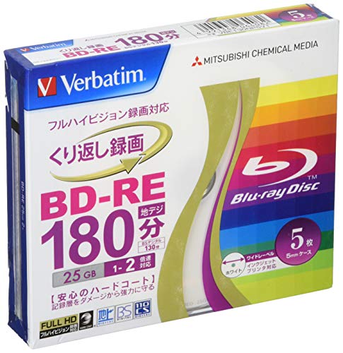 Verbatim Mitsubishi 25GB 2x Speed BD-RE Blu-ray Re-Writable Disk 5 Pack - Ink-jet printable - Each disk in a jewel case