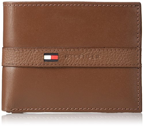 Tommy Hilfiger Men's Leather Wallet - Thin Sleek Casual Bifold with 6 Credit Card Pockets and Removable ID Window, Light Tan