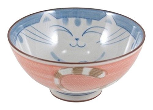 JapanBargain S2485, Japanese Smiling Pink Cat Porcelain Rice Bowl, 4-1/2" L