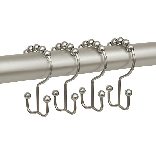 Maytex Metal Double Roller Glide Shower Curtain Ring/Hooks, Brushed Nickel, Set of 12
