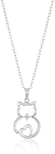 Sterling Silver Diamond Accent Cat Pendant Necklace, 18"
