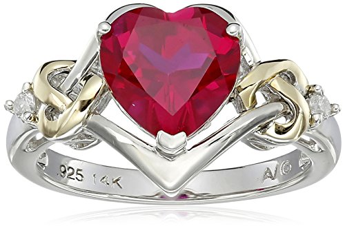 Sterling Silver and 14k Yellow Gold Diamond and Heart Shaped Created Ruby Ring