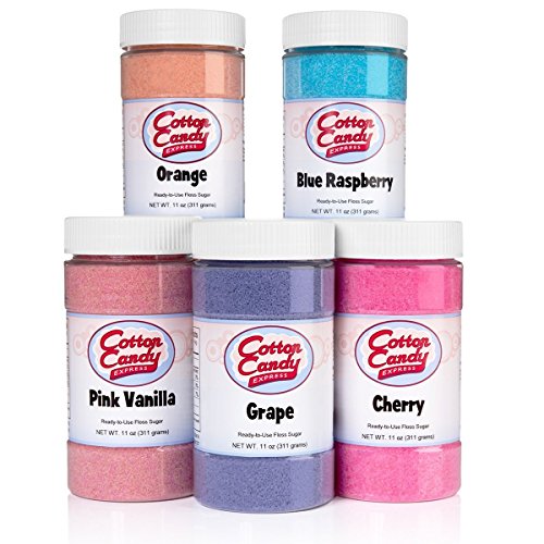 Cotton Candy Express 5 Flavor Cotton Candy Sugar Pack with Cherry, Grape, Blue Raspberry, Pink Vanilla, Orange, 11-Ounce Jars