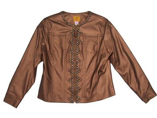 Ruby Rd Key Items Zip Up Faux Leather Jacket Bronze Metallic 10P