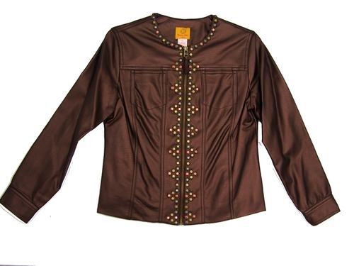 Ruby Rd Wild At Heart Zip Up Faux Leather Jacket Chocolate Met 4P