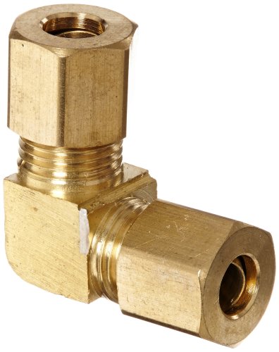 Anderson Metals 50065 Brass Compression Tube Fitting, 90 Degree Elbow, 1/4" x 1/4" Tube OD