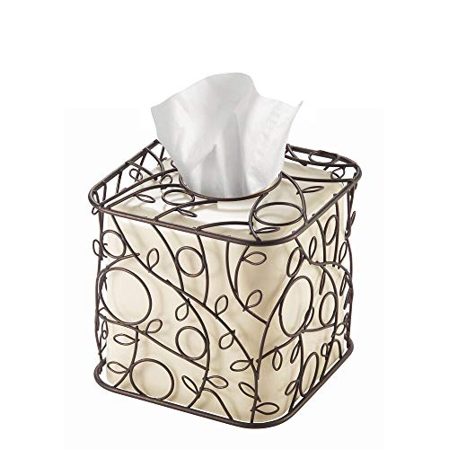 iDesign Twigz Plastic and Metal Facial Tissue Box Cover, Boutique Container for Bathroom Vanity Countertops, 6" x 6" x 6", Bronze and Vanilla